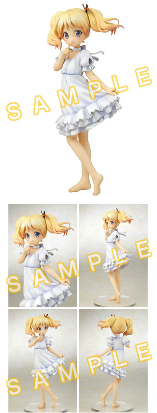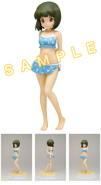 外国(&金髪少女)に強い憧れがある忍を、イメージカラーでもある青色の水玉の水着で、優しく天然な彼女らしく穏やかにフィギュア化いたしました。