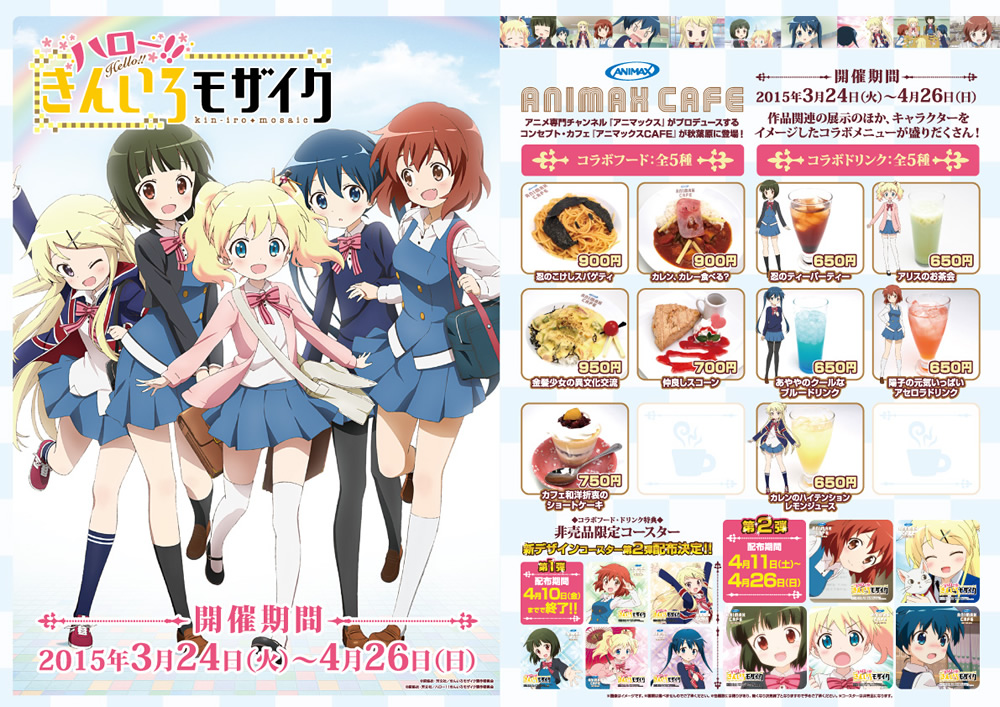 「アニマックスCAFE」×「ハロー!!きんいろモザイク」限定コースター第2弾登場!!